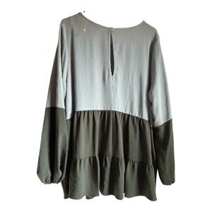 Elevate your wardrobe with this stylish two-tone long sleeve top. Featuring a chic combination of light gray and olive, this top is perfect for any occasion. Enjoy comfort and style in one elegant piece. New with tags size XL-2XL tunic top. Please see attached photos for more details.