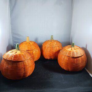 Vintage Wicker Pumpkins Candy Storage Set of 4