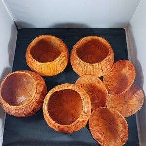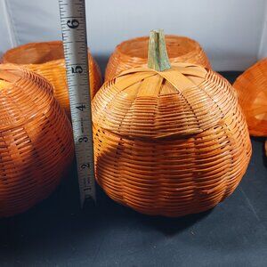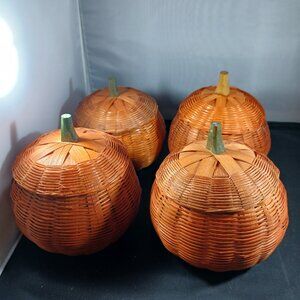 Some of them need tlc has been in the storage for a while, all good condition no broken wicker. Please scroll picture for more details. Vintage Wicker Pumpkins Candy Storage Set of 4. Pet and smoke free home.