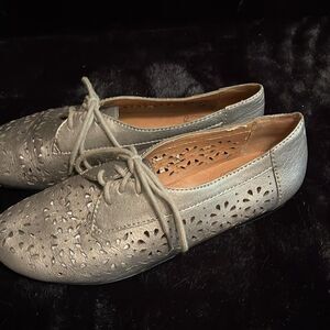 Lucky Brand lace-up oxford shoes with decorative perforations in good preowned condition.