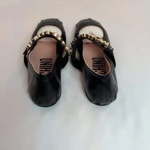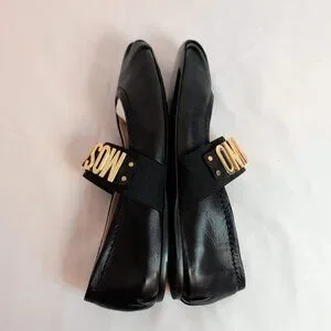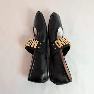 Moschino Couture Leather Ballet Flats With Gold Metal Letter Logo Sz 39