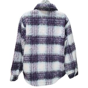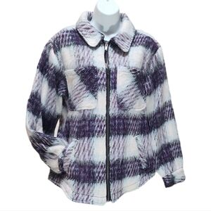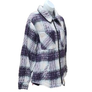 Women's Democracy Long Blouson Sleeve Zip Front Collared Patch Pocket Jacket Color Purple Multi. Size Small