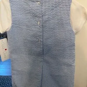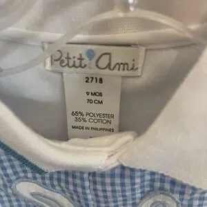 Charming baby boy bunny romper by Petit Ami. Gingham in blue and white. Size 9 months NWT