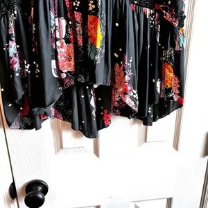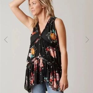 Free People Boho Floral Sleeveless Tunic Top Black Multicolor