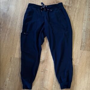 Like New Navy Med Couture Joggers. Lots of pockets, comfy and flexible waistband with additional tie, soft elastic at ankles to help keep pants in place. Worn only once.