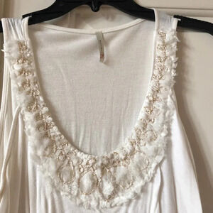 Boho flowy cream tank top with gold thread embellishments, size small