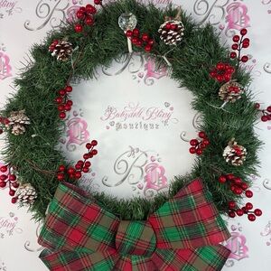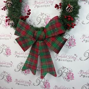 Enhance your holiday decor with this festive wreath featuring a classic red and green plaid bow. Perfect for adding a touch of holiday spirit to your home. Lights. Battery operated. New without tags. πβοΈπβ¨π©·ππ©΅