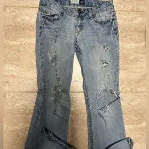 💕AEROPOSTALE HAILEY FLARE DISTRESSED JEANS SZ 7-8 LONG💕 7 1/2” Rise 33” Inseam