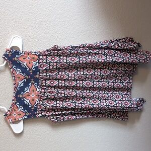 This soft tank from Anthropologie has a handkerchief hemline and cute detail at the chest. Navy, pink, white, and khaki. Pit to pit is 17" and front hem is 23".