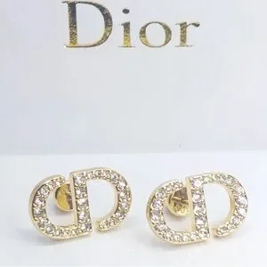 Chic Dior earrings with a gold finish. Adorned with sparkling silver crystals. Ideal for a luxurious touch.
