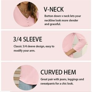 VDJ Women Tops Button V Neck 3/4 Sleeve T Shirt