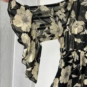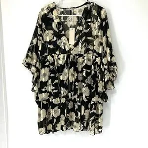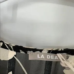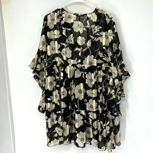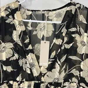 LA DEA NWT baby doll tunic lined top floral pit to pit 21.5 drawstring waist lying flat across 19.5 inches shoulder to hem 32 inches