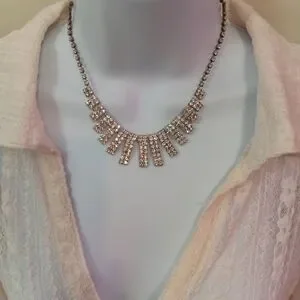 This stunning silver toned necklace features sparkling crystal accents, perfect for adding a touch of elegance to any outfit.