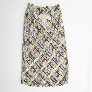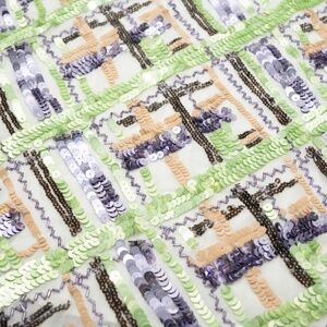Softly structured and richly textured, the Veronica Beard Brent skirt is crafted in a sheer, sequined viscose overlay with an intricate lattice pattern in violet, sage green, nude, and black. The midi silhouette falls fluidly with subtle movement, while the fully lined interior keeps it comfortable and wearable despite the detailed embellishment. Finished with a clean waistband and a refined, straight cut that lets the pattern and texture do the work.