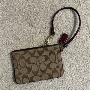 Coach Tan and Burgundy Signature Wristlet