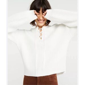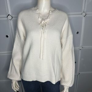 EUC. Ann Taylor Lace Up Sweater Size Medium. Very light cream in color almost white. Very soft. Slight bubble sleeves