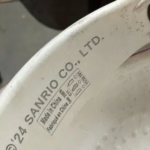 Identifiers: Interior stamping reads © '24 Sanrio Co., Ltd. with production code 1172501 and Crocs x Sanrio branding on side buttons and heel straps.
