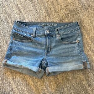 Chic light blue jean shorts. Perfect for everyday wear. Features classic five-pocket design.