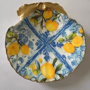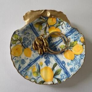 lemon decor, Mediterranean decor, coastal decor, oyster shell dish, jewelry holder, Amalfi decor