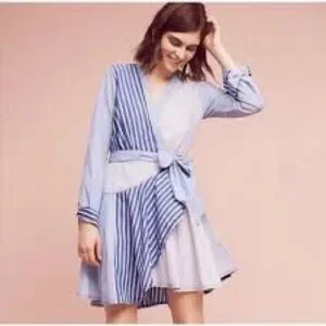Maeve Newport Striped Blue and White Wrap Shirt Dress NWOT
