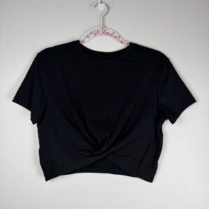 Alphalete Evo Twist Crop Top Workout Gym Black Shirt Short Sleeve Large Logo