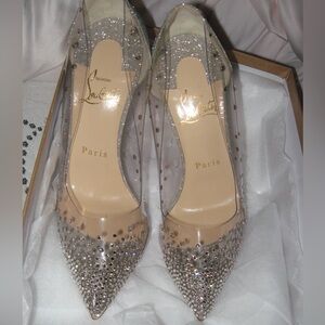 Authentic Christian Louboutin pvc degrastrass silver rhinestone glitter heels