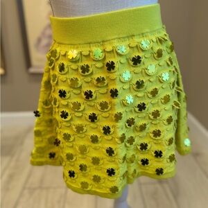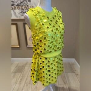 New! SET! QUEEN OF SPARKLES Neon Green Clover Pailette Knit Top & Skirt