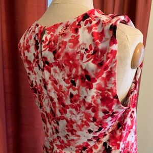 Chic floral blouse with vibrant red and pink hues. Sleeveless design for versatile styling - wear alone or under a suit