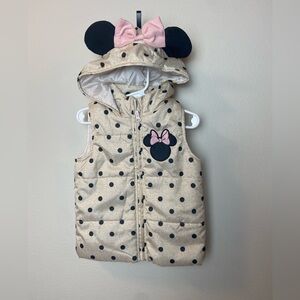 Adorable Minnie Mouse polka dot hooded vest featuring cute ears and a bow. Perfect for adding a playful touch to any outfit. Excellent condition.