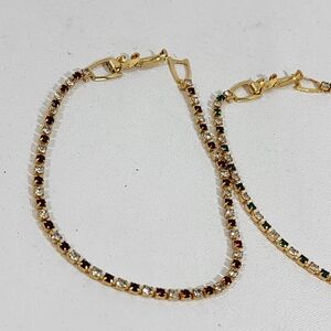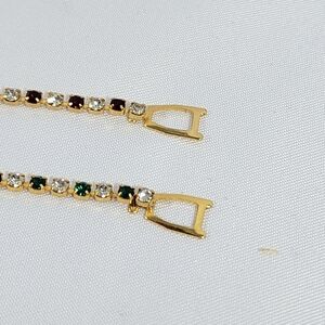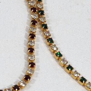 Vintage Crystal Tennis Bracelet Gold Tone Red Green Clear Dainty Minimalist 7"