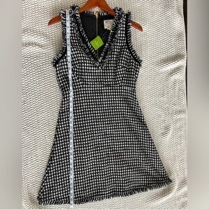 Kate Spade NWT Houndstooth Sheath Dress Sleeveless Fringe Trim Chic Tweed