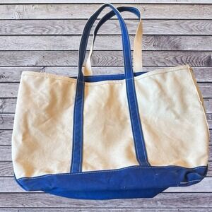 Vintage LL Bean Canvas Boat and Tote Bag Blue/cream EH Zip Top 90's