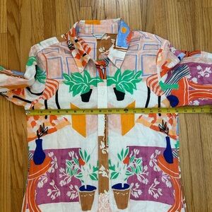 Poetry Multicolor Linen Blend Long Sleeve Plant Print Dress