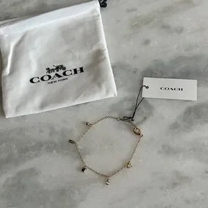 Stylish gold bracelet with charming accents. Includes Coach pouch. Never worn.