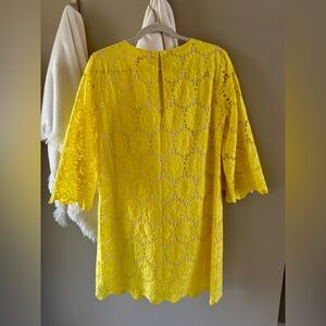 Chic long sleeve dress in vibrant yellow. Features intricate lace design. EUC.
