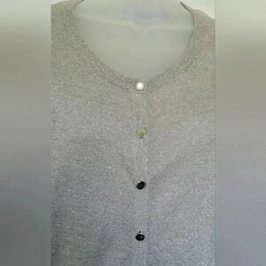 VTG Y2K 1990s Limited Silver Metallic/Gray Button Up Cardigan Sheer Back Sz Med.