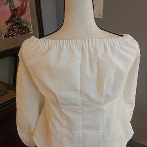 Shein Curve 0XL Puff Sleeved Off Shoulder White Boho Shirt Size M NWOT