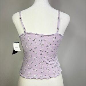 NEW Hollister Y2K babydoll ditzy ditsy floral print lettuce edge lavender cami S
