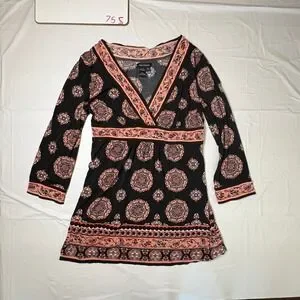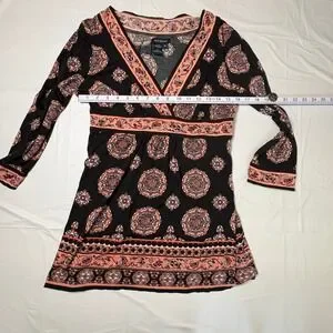 Max Edition Womens Pink Black Medallion Empire Waist Tunic Top 3/4 Sleeve M Y2K