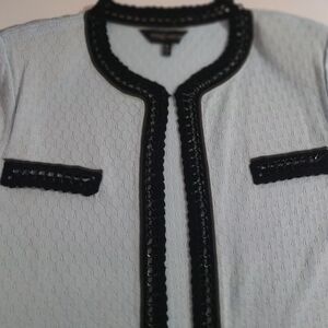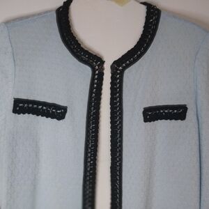 MING WANG Women's Blazer Suit Size XL Elegant with Blue Pattern Black Trim