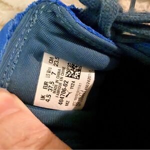 Bold blue sneakers with cream accents. Comfortable and stylish. Ideal for casual wear.