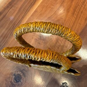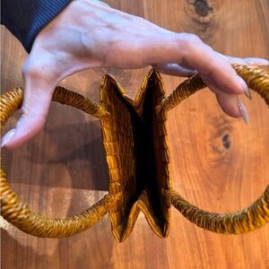 This stylish muted orange woven tote bag is perfect for any occasion. Its vintage design and durable construction make it a must-have eclectic tote. No damage, like new.