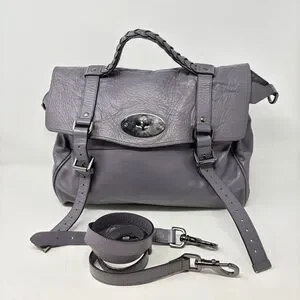 Authentic Mulberry Alexa Regular satchel in a beautiful muted slate lilac grey leather with gunmetal hardware.