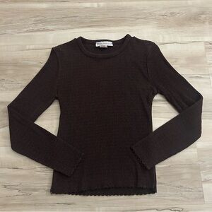 Miss Jessica Chocolate Long Sleeve Ribbed Top Size Medium