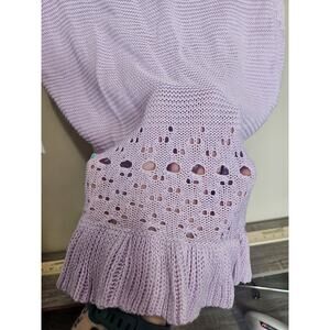 A charming lavender sleeveless knit top featuring a delicate eyelet pattern and ruffle hem. Perfect for adding a touch of femininity to any outfit.