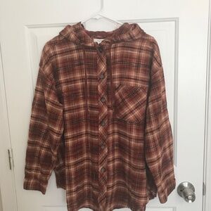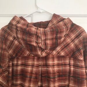 Maurices Cabin Plaid Hooded Boyfriend Flannel Tunic Shirt Plus Size 1X Brown