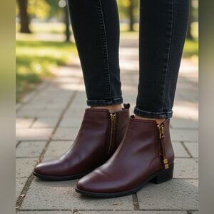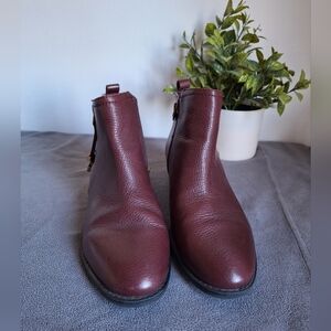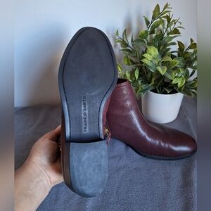 Franco Sarto wine-colored leather ankle boots with gold zipper. 8M womens