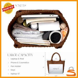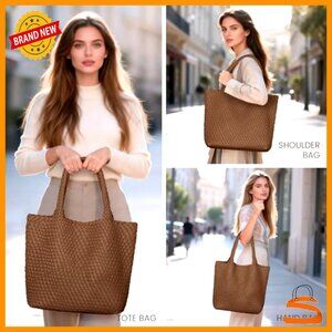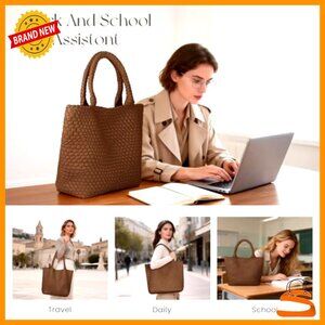 Large Woven Vegan Leather Laptop Tote Bag Lightweight Work Purse Satchel