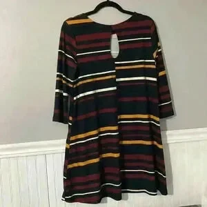 This dress was loved but still has lots of wear for someone else. Super soft to the touch, size L, colors are black, yellow, and wine. It look super cute with leggings or black tights and boots!