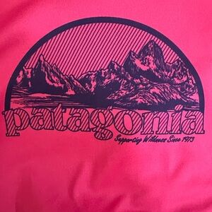 Bright pink short sleeve tee with mountain graphic. Perfect for casual outings.